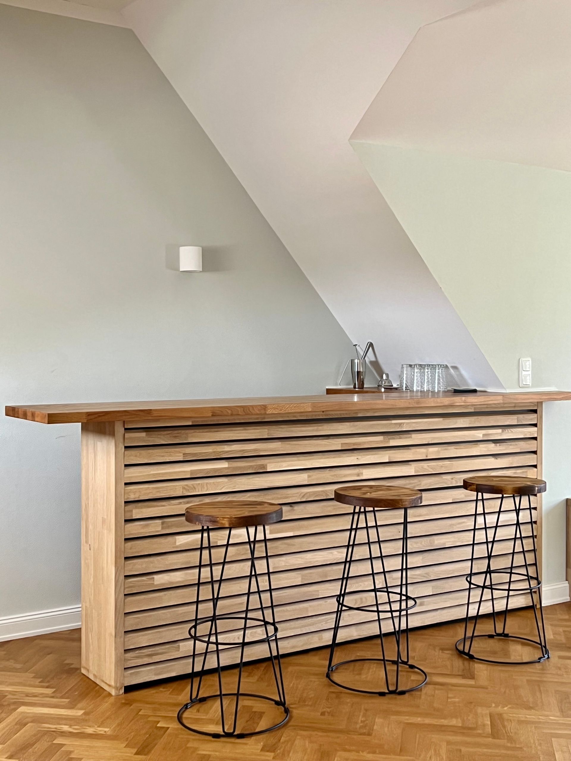 Zwei kleine, äußerst gemütliche Schlafzimmer schaffen mit ihren halbrunden Gaubenfenstern eine besonders gemütliche Atmosphäre - beide Zimmer jeweils mit eigenem Bad. Ein Lounge- und Bar Bereich sowie diverse Brettspielklassiker laden zu langen Spieleabenden ein.